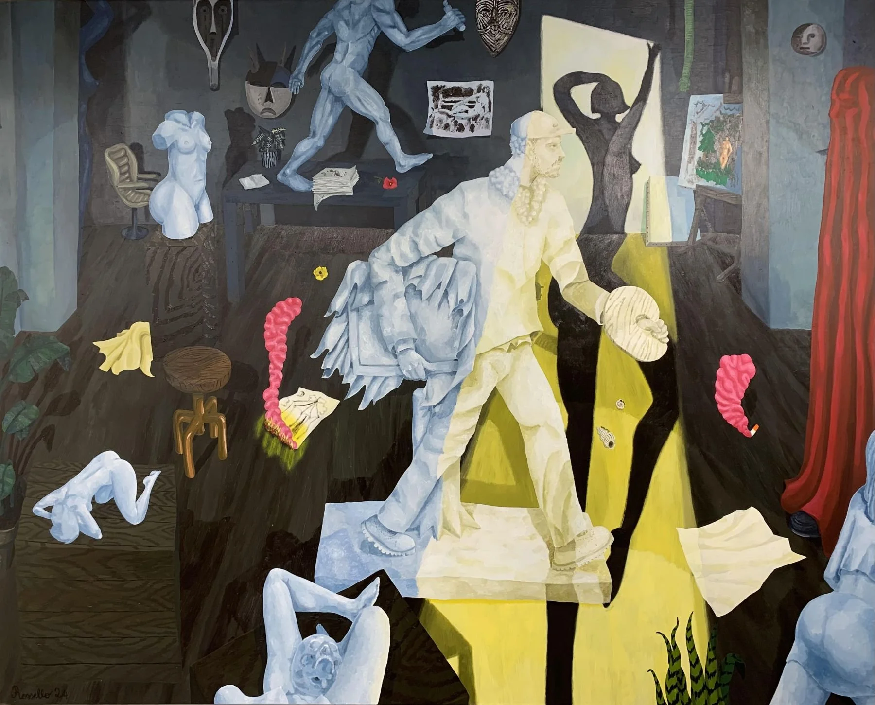 Francesc Roselló, Medusa’s Sculpture Studio, 2024, Acrylic on canvas, 78.74h x 98.43w in