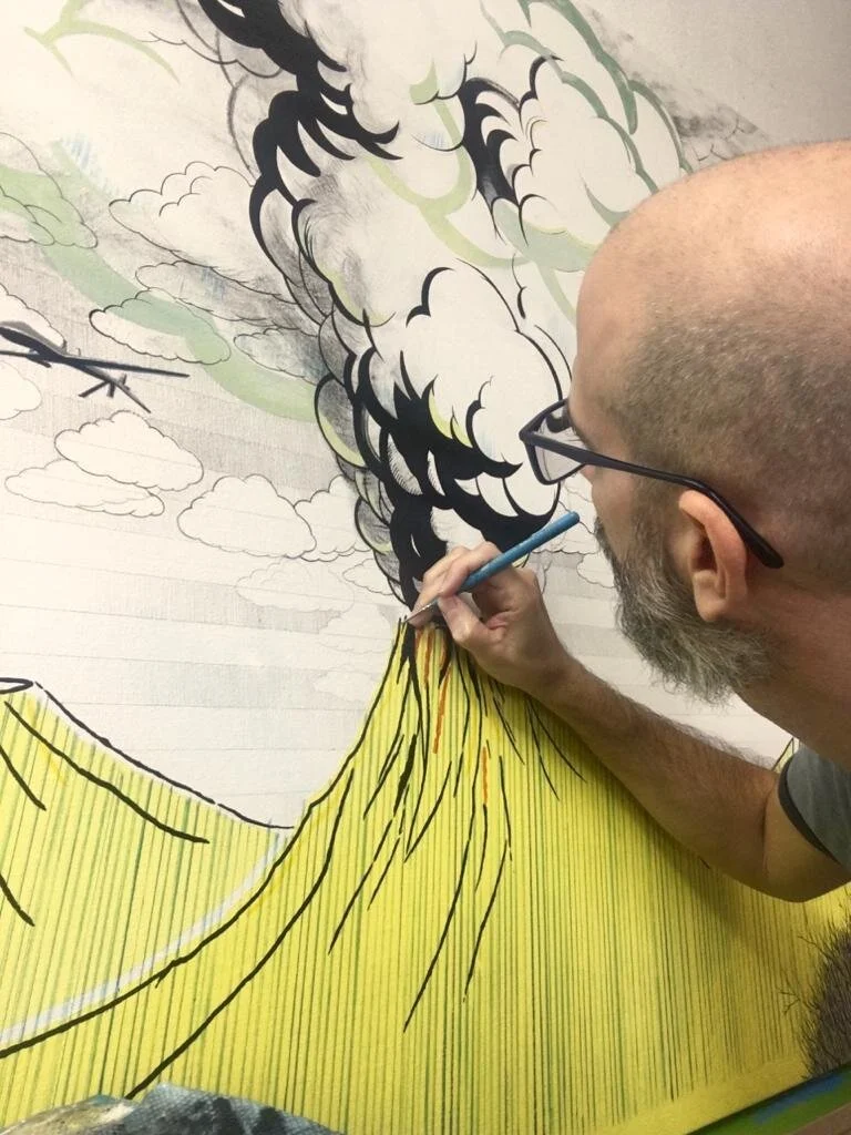 Gerard Ellis, Aeroplane, 2023, Acrylic and pen on canvas, 44h x 66w in