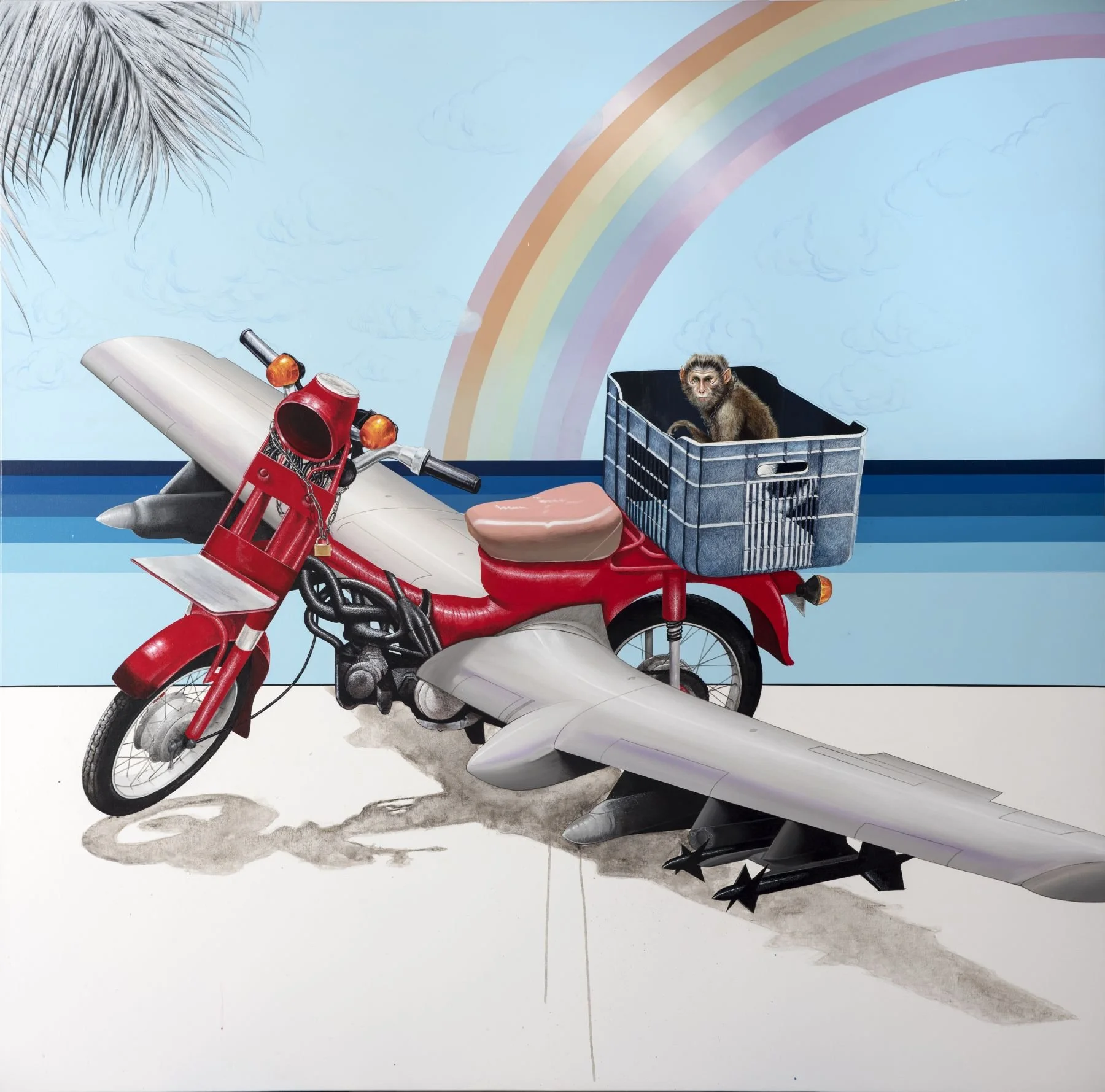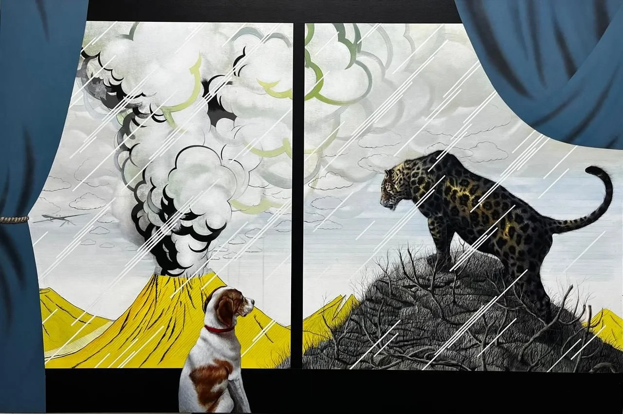 Gerard Ellis, “The Visit”, 2021, Acrylic and Spray Paint on Canvas, 36h x 54w, From His Incoming Solo Show “Tierra de Nadie”.