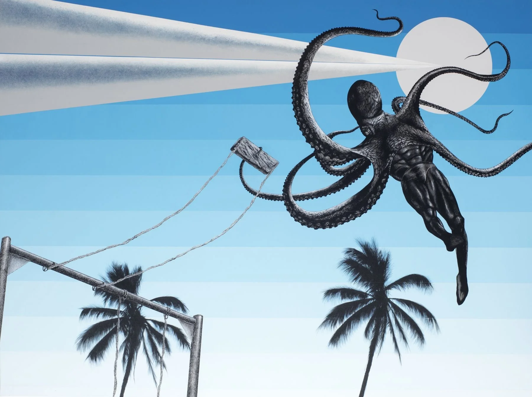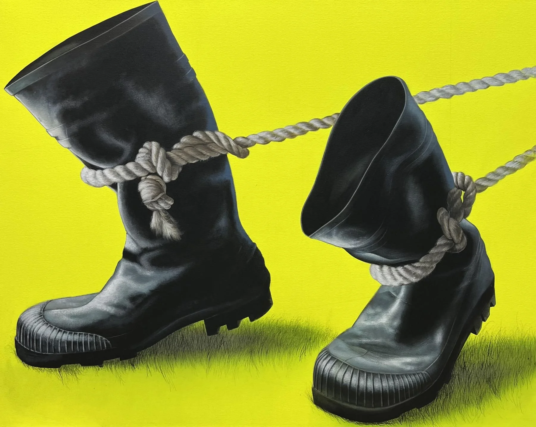 Gerard Ellis, La Carga, 2024, Acrylic on linen, 69h x 77w in (Colección privada)