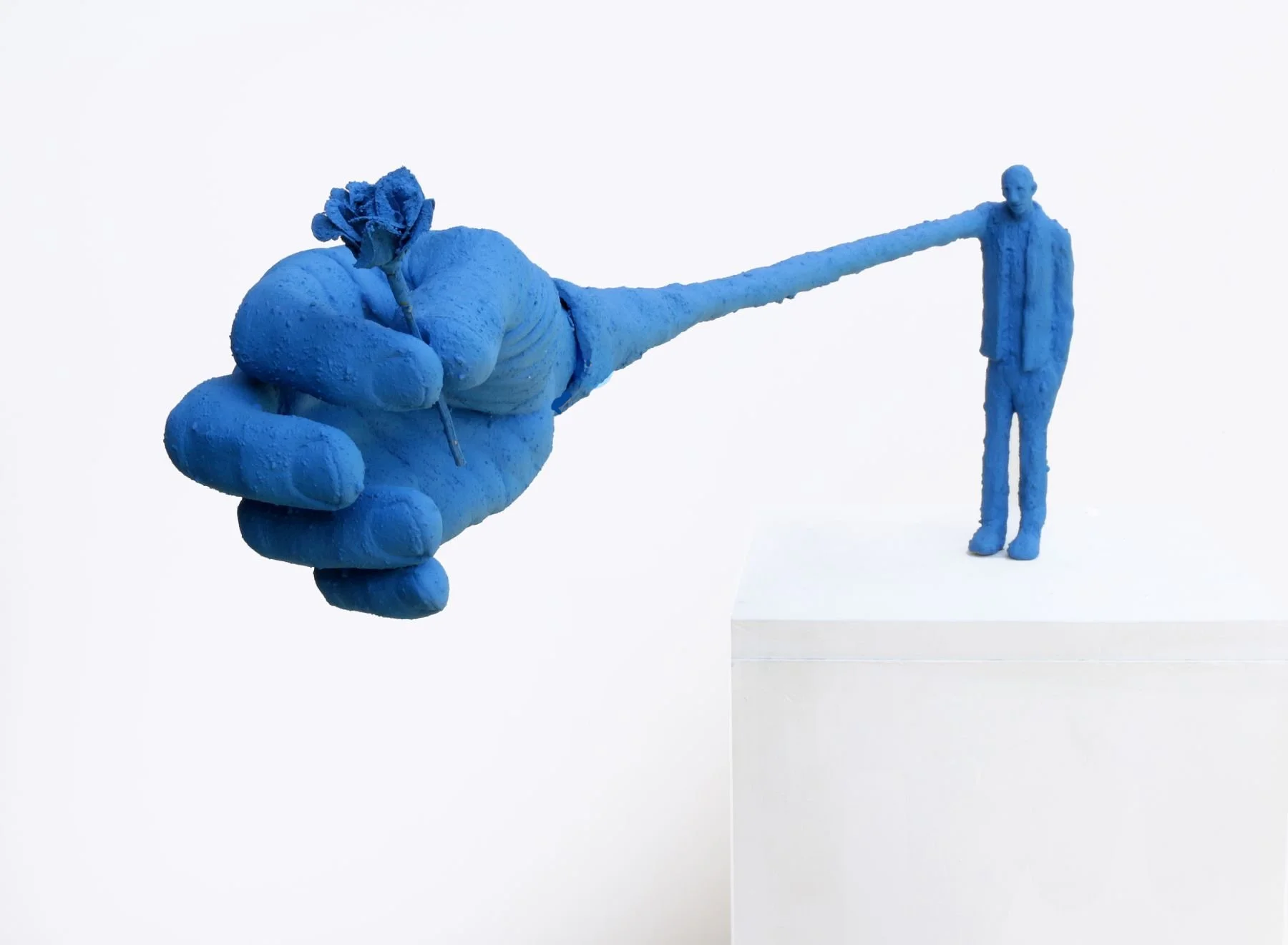 Gerardo Feldstein, Azulcita, 2024, Resin, epoxy putty, artificial flower, 26h x 10w x 55d cm