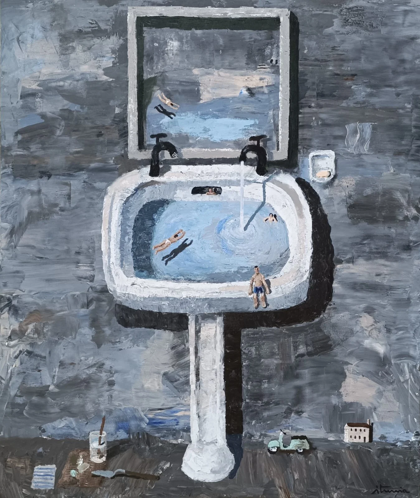 Ignacio Iturria, Piscina, 2025, Oil on linen, 62.99h x 51.18w in, 160h x 130w cm