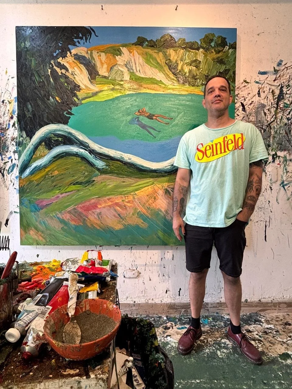 Las pinturas de Peña rinden homenaje al paisaje con un énfasis especial en el agua y en los senderos que conducen hacia ella. Playas, ríos y caminos abiertos funcionan como metáforas del viaje interior: no hay prisa ni destino inmediato, solo la experiencia del trayecto. En su universo pictórico, el agua aparece como destino final, un espacio de reposo y contemplación donde el cuerpo descansa y la mente se aquieta.
