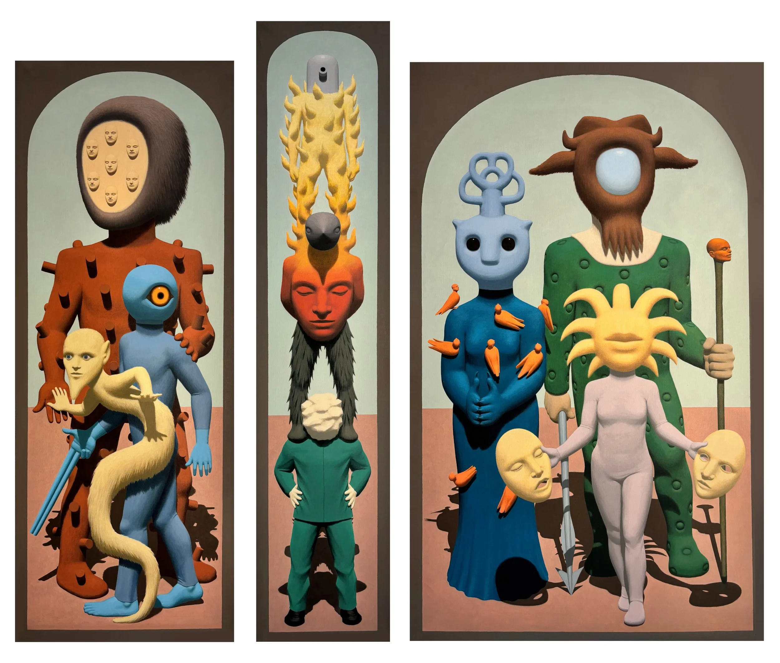 Pierre Monestier, Parade Tryptic, 2021, 56h x 62.50w in