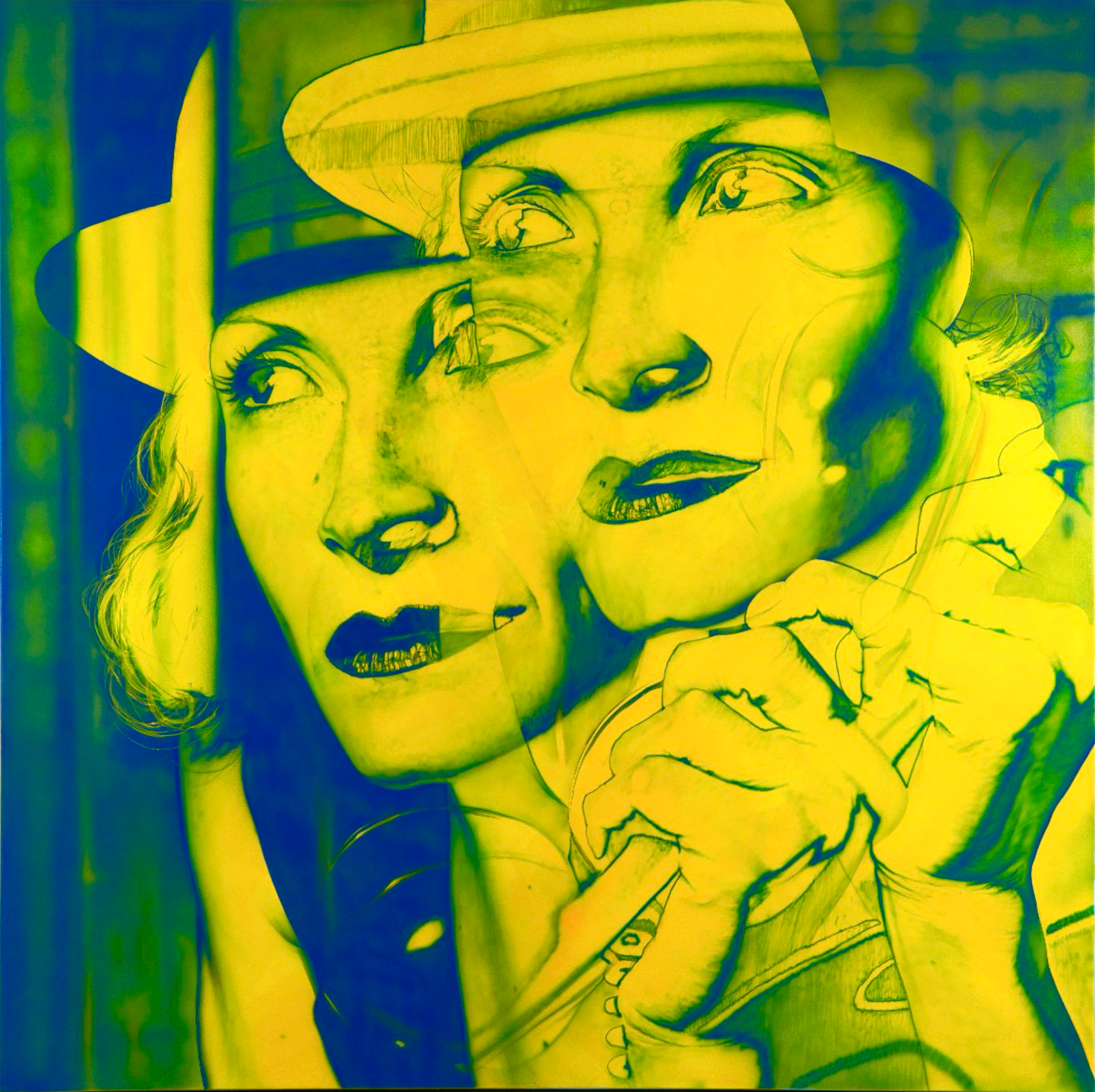 Yellow Double Phone call, 2022, Acrylic on canvas, 78h x 78w in